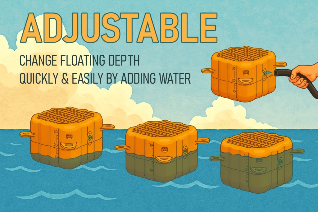 Modular floating cubes that connect seamlessly to create docks, platforms, islands, and more. Durable. Affordable. Storm-ready.